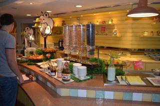 Опубликовано 22 марта, 201411 г. Автор comment_417380 День 5 - Париж. Правый берег Накануне Катя объявила нам, что все планы на последующие дни она запишет на листе, и этот лист будет висеть рядом с лифтом на первом этаже. Всех экскурсий я не вспомню, так как мы ни на одну не ходили, однако... Были предложены Нормандия, замки Луары, Диснейленд (на нашу дату бесплатно до 25 лет, оплатить нужно было лишь трансфер), Эйфелева башня, башня Монпарнас, экскурсия по Монмартру, 3 кабаре на выбор (Лидо, Мулен Руж и Паради Латен), ужин в ресторане, Лувр... В общем, полно всего. У нас же были собственные планы. Из выездных экскурсий мы взяли только Диснейленд. Только при окончательной оплате тура мы узнали, что он будет для нас бесплатным :dance4: Другие выездные экскурсии брать не стали, потому что хотелось посмотреть сам город, погулять по нему побольше. Пора вернуться к основной теме этого сообщения. Утром мы проснулись и отправились на завтрак. В этом отеле, как мне показалось, были лучшие завтраки из всех на маршруте. А вот и фото зала: На столах присутствовала разнообразная выпечка (в т.ч. круассаны без начинки и булочки с шоколадом), несколько видов хлопьев, нарезки сыров и колбас, нутелла, джемы, масло соленое и несоленое, хлеб, йогурт без наполнителя, фрукты, йогурт в баночках, соки. Кофе-машины делали кофе на личное усмотрение: можно эспрессо, можно американо, можно с горячим молоком, можно по-венски (с горячим молоком и какао). Также стоял тостер. Правда, не было омлета. В общем, было практически всё, что угодно :smile: Прекрасно позавтракав, мы отправились в Лувр. Как писали ранее, вход в метро и правда у входа в отель. Ты выходишь, делаешь 10 шагов, и вот она - лестница под землю. Оказалось, что на этой станции нет билетной кассы, билеты можно купить только в автомате, а он принимает купюры максимум в 20 евро. Нам пришлось вернуться в отель на ресепшн, чтобы разменять деньги. Нам помогли без проблем, персонал вообще был очень приветлив. Тут, правда, стоит отметить, что я знаю французский, мне было несколько проще, чем другим нашим туристам. В общем, мы купили билеты в автомате (взяли карне из 10 шт) и отправились к Лувру. На форуме я много читала о том, что при пересадке нужно искать указатели на линию пересадки с надписью Correspondence. Отмечу, что это слово в метро я не видела ни разу. Мы искали глазами таблички со стрелками, указывающими направление перехода на линию нужного цвета и номера. Все доступно и понятно. Пару раз мы оказывались в переходах, где уже не было стрелок на нашу линию, в таком случае мы просто возвращались к последнему месту, где видели такие стрелки и смотрели вдаль внимательнее :smile: Нажимать кнопки и дергать рычажки дверей вагонов тоже не приходилось - французы были шустрее нас. В метро нам попадались довольно интересные персонажи. Один читал реп, глядя на свое отражение в окне вагона, а потом всех поблагодарил за внимание и прошелся по вагону, собирая деньги у желающих их дать. Был парень, который ел чипсы, высыпая их из пачки себе на руку, поэтому сидел один, весь усыпанный этими крошками. Был откровенно обдолбанный паренек, который размахивал банкой с пивом и говорил, что видит море. Его выдворил из вагона другой пассажир. Несмотря на их неадекватность, они ни к кому не лезли, просто вызывали недоумение других пассажиров. Я бы не сказала, что их надо остерегаться или боять