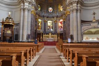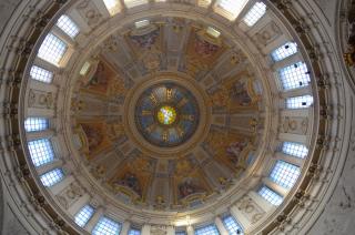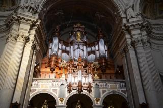 Опубликовано 14 февраля, 201411 г. Автор comment_403456 День 3 - Берлин Утром мы встали в 5-10, к 6 пошли на завтрак. Завтрак был порционным; на тарелке - 3 кусочка ветчины, 2 кусочка сыра, "призмочка" плавленного сыра, кусочек масла, джем. Взять можно было хлеб, сосиску и чай/кофе, молоко. Не шикарно, но голодными не остались. Отъезд из отеля должен был быть в 6-45, но некая семейная пара проспала, до них еле достучалась гид. Ждали их 20 минут. Нам объявили, что из Берлина нас заберут в 14-00 у Львиных ворот зоопарка. Как выяснилось позже, это не основной вход (основной со слонами), а боковой. Также Катя сказала, что будут фотопаузы у Трептов парка (20 минут), Берлинского собора и Рейхстага. Вообще основной части группы была обещана экскурсия в Рейхстаг за дополнительную плату (кажется, не больше 8 евро). Однако, как нам потом сказали соседи по автобусу, экскурсия не состоялась, это было как-то связано с погодой. Точно не могу сказать, что группа делала дальше, догадываюсь, что посмотрела на Бранденбургские ворота и отправилась на автобусе к месту основного времяпрепровождения - Цоо. Как объяснила гид, в Берлине у нас слишком мало времени, поэтому она решила так его организовать. Наши же планы были иными. Я никогда не была в Берлине раньше, и нам не хотелось 3 из 5 часов в городе провести в магазинах у Цоо либо собственно в зоопарке (мне грустно видеть диких животных в загонах, пусть и в отличных). Нам хотелось посмотреть город. Поэтому мы решили отправиться в свое путешествие по Берлину, покинув группу у Берлинского собора. Однако до этого мы посетили Трептов парк вместе со всеми. Это очень величественное и красивое место. Мы решили не идти к основному монументу, а насладиться видом чуть издали, хотя в группе были некоторые женщины, устремившиеся вдаль. Хочется еще добавить, что нам очень повезло с погодой в Европе. Судя по отзывам других форумчан, частенько люди попадали под дождь даже летом, а у нас в зимнем туре почти все дни были солнечными. Это огромная радость и удача!! :smile: Тем более что мы забыли зонт :biggrin: Погрузившись в автобус, мы отправились дальше. По пути Катя рассказала нам про Ordnung и любовь немцев к чистоте. Стоит отметить, что впоследствии в городе я нередко ощущала запах стирального порошка, исходящего, вероятно, от одежды прохожих. Люблю этот запах :smile: Из окна автобуса мы посмотрели на галерею восточной части Берлинской стены и молекулярного человека. Наконец, мы приехали к Берлинскому собору. Группа побежала фотографировать достопримечательности музейного острова, а мы спокойно пошли в собор. Вход стоил 7 евро. Этот собор произвел на меня самое большое впечатление, полюбился мне больше всего в нашем туре. Он просто чудесен! Смотрите сами: После осмотра основного зала (если можно его так назвать), мы пошли наверх на "балкон", а оттуда на "музейный" этаж. Там очень интересно! Есть очень занятный "экспонат". Стоит большая коробка, а в её стенке есть отверстие. Заглянув туда, видишь зеркало, на которое проецируется макет купола собора! Либо, если подходишь к другим стенкам, - другие элементы внутреннего убранства. Весьма неожиданно! После мы полезли на смотровую площадку собора. На "ресепшн" нас предупредили, что выйти на улицу будет нельзя, посмотреть можно только изнутри через окна. Смотреть в окна оказалось не так интересно, как бегать, как мышка, по круглому коридо