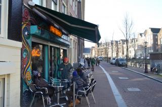 Опубликовано 19 февраля, 201411 г. Автор comment_406243 День 4 - Амстердам В этот день мы встали в 6-15 благодаря тому, что вышеупомянутый отель находится очень близко к Амстердаму :smile: Завтрак -шведский стол: булочки, колбасы и сыры, соки, кофе/чай, фрукты с йогуртом, мюсли. В общем, это порадовало. К сожалению, в разные дни разные туристы несколько задерживали выезд из отеля. Около 9 часов мы приехали на Музейную площадь. Катя сообщила, что встреча у автобуса - в 15-30 у отеля Виктория рядом с ж/д вокзалом. Группе были предложены экскурсия на алмазную фабрику Coster Diamonds, прогулка на кораблике по каналам, поход в музей мадам Тюссо, экскурсия в квартал красных фонарей, возможно, что-то еще, но я не помню, так как у нас был свой план. Пофотографировавшись с группой у надписи I amsterdam, мы отправились в свое путешествие по только-только пробуждающемуся Амстердаму. Оказывается, каток есть и на Музейной площади :wink: Но и на нем нельзя без велика :biggrin: Это было воскресенье, поэтому людей на улицах было совсем немного, погода стояла чудесная. Прозрачное свежее солнечное утро! Красота :smile: Мимо витрин магазинов с красочной галантереей, мимо белой собачки и поспевавшего за ней хозяина мы дошли до первого канала на нашем пути. Я как-то иначе представляла себе площадь Макса Эйве... Она напомнила мне внутренний дворик. А вот и ящерки греются на солнышке :smile: Увидели работающую кондитерскую и не смогли удержаться... Отдали 3,3 евро за пончик и круассан. Мы направлялись в сторону цветочного рынка. По пути зашли в сувенирный магазин. На цветочном рынке было так много всего красивого и интересного... Луковицы и семена тюльпанов и дельфиниумов различных сортов, очаровательные букеты... Мы купили подарки мамам. За 2 сеточки по 10 луковиц тюльпанов отдали 8 евро. Выбирали те, что без плесени. Теперь они лежат в холодильнике и ждут своего часа :smile: Тут же нам попался сырный магазин Old Amsterdam. Продавец объяснил, что их гауда в 2010 году получил приз на некоем конкурсе сыров :smile: В магазине этот сыр продавался в разных объемах. Сувениры отсюда также отправились в Тамбов, а еще мы взяли маленькую сеточку с небольшими упакованными кусочками сыра себе в путь-дорожку. В общем потратили 23,5 евро. Еще канал и велосипеды... Дальше наш путь лежал в монастырь бегинок через площадь Spui. Почему-то дорогуша в этот день был не одет :biggrin: Мы довольно быстро нашли вход в монастырь, который скрыт за деревянной калиткой. Мы зашли во внутренний двор, очень тихий, аккуратный и зеленый. Там же располагается английская реформатская церковь. Мы спросили на входе, можем ли мы войти, и нам разрешили. При этом мы были далеко не единственными входящими. Оказалось, что мы пришли к началу службы! Я спросила у женщины, можем ли мы занять место, и она сказала, что можем. Появился пастор, который начал читать проповедь на английском. На скамейках были разложены книги. В какой-то момент пастор сказал открыть конкретную страницу, все встали, открыли книги и начали петь с аккомпанементом органа! Это было удивительно, волнительно, непривычно... Мы такого не ожидали! Подпевать мы не решились, а лишь стояли и незаметно наблюдали за всем происходящим вокруг. После все уселись, продолжилась проповедь. В какой-то момент я подумала, что доносится некий шум с улицы. Потом я осмотрелась и увидела, что все сидят с закрытыми глазами, опустив головы и шепчу