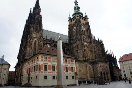 Четвертый день нашего путешествия. Все ближе и ближе приближаемся к моей мечте - Праге. Благо отель был почти в центре города, мы быстренько забрали гида Наташу, прекрасного рассказчика, и отправились в центр города к собору Святого Вита. Послушали рассказ Наташи о городе подождали начала смены караула, пофотографировали бравых ребят и пошли в сам собор. Ну, что сказать? Он просто великолепен и снаружи и внутри. Потом прогулялись по площади у собора, полюбовались на город сверху и по длинной лестнице спустились к Карлову Мосту. Народу, на наше счастье, на нем было мало и мы спокойно, слушая нашего гида, прогулялись по нему, не забывая потереть все что нужно в этих случаях. Свесились с моста, чтобы лучше видеть речку Чертовку с мельничным колесом. Настроение у всех преотличное и солнце добавляет прелести к прогулке. Дальше наш путь лежал по улицам города к Ратуше чтобы увидеть бой часов. Вот где народищу! Уйма! Мы заняли самое удобное место и отлично все увидели. Потом гиды вывели нас к рынку, где был еще один пасхальный базар. Первый базар находился около Ратуши. Теперь мы получили первое свободное время. В наших планах во время посещения Праги была покупка настоящих чешских гранатов. Маша нам все показала, где какие магазины и на что следует обратить внимание, и мы решили сразу пойти в магазин за гранатами. Удачно сделав себе подарки, использовав купоны на скидку, которые всем вручила наша Маша, мы пошли просто гулять по пасхальному базару. Прикупили себе талисман Ежи-бабку на счастье. Купили еще 2 пасхальных яйца, с которыми произошла потом мистическая история. :ph34r: