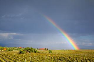 Тут паровозик выехал за пределы города и нам открылись бескрайние просторы виноградников.