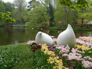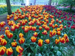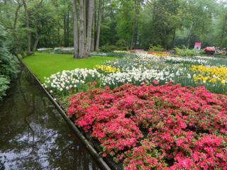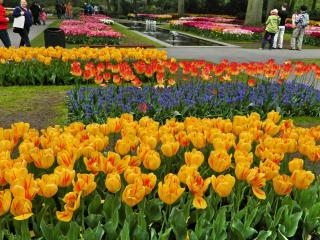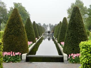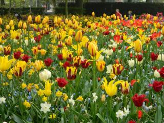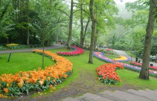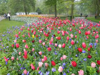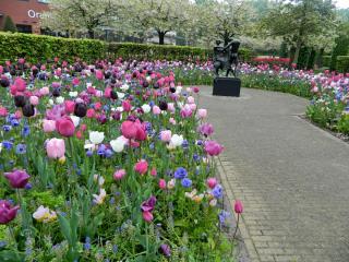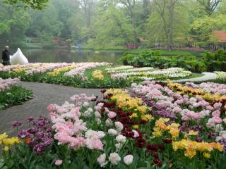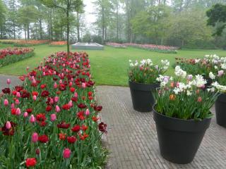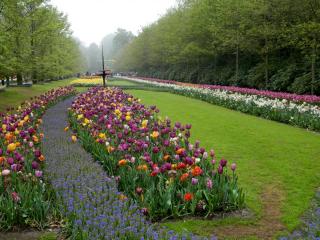 Опубликовано 11 мая, 201411 г. Автор comment_430833 ДЕНЬ СЕДЬМОЙ, 30 АПРЕЛЯ, среда Наконец, наступает долгожданное утро 30 апреля, того дня, ради которого многие и едут в тур 1NB, когда намечена поездка в Кёкенхоф! План на день немного отличается от указанного в описании. Сразу с утра едем в Кёкенхоф, уже оттуда в Дельфт, Гаагу и далее в Антверпен. Парк Кёкенхоф открывается в 8 часов утра, и именно к этому времени мы планируем туда приехать. Для этого отъезд из отеля назначается на 7.30 утра, завтрак - на 6.30. Встав пораньше, собираем чемоданы, отель покидаем насовсем, ночевать будем в Антверпене. Жалко отель, неплохой был, Wi-Fi хороший и даже без кода. За окном еще густые сумерки, видно, что снова облачно и туманно. Зато на раннем завтраке свободно, даже "часовой" у входа еще не сидит. Кролики уже проснулись и носятся вокруг отеля. Точно в назначенное время выезжаем в тумане и на стоянку автобусов перед входом в Кёкенхоф, расположенную на лужайке с подъездными дорожками, прибываем первыми во главе колонны из нескольких автобусов. Парковщики принимают нас, как аэродромная служба в хорошем аэропорту, машут руками, указывая направления движения (чуть не применил авиационный термин - рулежки). Подходим к воротам, Таня приобретает и раздает билеты - и мы на территории Кёкенхофа в числе самых первых посетителей. Облачность и туман никуда не делись, разве что туман стал чуть менее плотным. Перспективы аллей в нем тонут, но ближние планы снимать не мешает. Темновато, но фотографировать можно. Конечно, лучше и веселее бы яркое солнце; но и тут нахожу положительную сторону. Многие цветочные композиции расположены под деревьями, и при солнце возникнут большие перепады яркости цветов, а у нас свет равномерный, хоть и тусклый. Естественно, эта фраза лишь для самоуспокоения, но с природой и погодой не поспоришь. Про Кёкенхоф писать не надо, надо просто видеть эти миллионы цветов. Охи, ахи, восхищенные междометия раздаются непрерывно. Молодцы голландцы, создать такое чудо природы и садово-паркового искусства! Далее отчет разобью на несколько частей. Поскольку обещал в теме Анатольевны показать парк в тумане, приведу сначала несколько снимков аллей, где этот туман заметен. Правда, вначале снимал только одни цветы на ближних планах, а когда добрался до аллей, туман стал слабеньким. Но всё равно посмотрите. Окрестные поля тюльпанов уже отцветают, большинство цветов срезано для вызревания луковиц. Много срезанных участков и на клумбах, на некоторых и сейчас работают рабочие, выполняя срезку Изменено 15 мая, 201411 г. пользователем alevgr Жалоба
