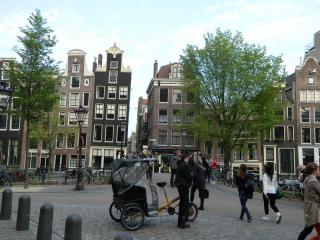 Опубликовано 11 мая, 201411 г. Автор comment_430635 Около 10 часов утра прибыли в Амстердам, ко входу на алмазную фабрику, куда почти все, не бывавшие в городе, и направились. Я понимаю, что турбизнес есть турбизнес, реклама есть реклама, но более бестолкового времяпровождения, чем последующие полтора часа, я представить себе не могу. Насколько я знаю, алмазная фабрика спонсирует ТТВ для прогулки по каналам Амстердама, но уж лучше бы честно заплатил за прогулку самостоятельно. Не зря на форуме все бывалые дружно ругают эту самую фабрику. Началось с того, что на входе куча групп и толкучка. Святое для туриста дело - посещение бесплатного туалета - превратилось черт знает во что, тут наша прекрасная половина автобуса (вернее, прекрасные 90% автобуса) отличилась в деликатном вопросе. Да, на санитарных стоянках, когда "кончаются" мужчины, женщины для ускорения процесса заходили и в мужской туалет. Здесь туалеты в подвале с узкой лестницей. Дамы кинулись вниз, закупорили весь проход, и просто не пропустили мужчин, заявив, что они уже сразу занимают оба туалета! И ведь дело происходило не в лесу, а центре города. Ладно, Бог с ними, сходить в туалет можно и на выходе, не проблема. Около 10.35 началась экскурсия. Сначала на крупных стекляшках нам показали формы огранки алмазов, и далее завели в комнату, где продемонстрировали несколько ограненных алмазов весом от 0.05 до 8 карат, бесцветных и черных. Комнату предварительно закрыли на ключ, чтобы злые воры чего не украли. Я по наивности думал: сейчас будут показывать, как делается огранка, рассказывать и демонстрировать что-то интересное, процесс создания бриллианта. А тут сразу же перешли к демонстрации изделий, и здесь наши дамы снова "зависли", разглядывая и примеряя ювелирные изделия на себя. Можно подумать, что автобусные туристки - сплошь бизнес-леди или жены миллионеров! Тем, кому это неинтересно, стало откровенно скучно, но из закрытой комнаты не выйдешь. Подходит назначенное время начала пешеходной экскурсии, до выхода с фабрики еще надо пройди через музей и магазин, где тоже можно смотреть, а они не могут оторваться от побрякушек... Хотя я очень не люблю шуметь, пришлось два раза громко гаркнуть, чтобы привести в чувство наиболее ошалелых от блеска бриллиантов дамочек. Двери открыли, но еще с полчаса собирали народ из магазина на экскурсию. Единственный плюс - за это время мы, собиравшиеся в Рейксмузей, внизу сразу купили туда билеты, чтобы потом там не стоять в очереди, и сфотографировали музей с надписью "Я - Амстердам" и декоративным водоемом. Точное время начала пешеходной экскурсии по Амстердаму не запомнил, около 11.30. Имя гида записал такими корявыми буквами, что сейчас не могу разобрать; вроде Равиль, но не уверен; знающие попутчики, выручайте! Пройдя через арку Рейксмузея, двинулись по неширокой живописной улице Spiegel, через мосты на многочисленных каналах, в сторону центра города. И здесь моя злость, накопленная из-за неурядиц на фабрике, мгновенно улетучилась. Несмотря на хмурую, пасмурную погоду, я, как льдинка на горячем солнце, начал стремительно таять, и через два квартала растекся лужицей, безоговорочно влюбившись в город! Пусть любовь получилась не с первого взгляда, а со второго, но она получилась, я безоговорочно сдался на милость победителя! Я понял, что этот город - МОЙ! Он вошел в мое сердце, и тепе