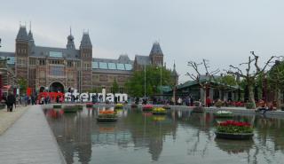 Опубликовано 11 мая, 201411 г. Автор comment_430644 Наша екатеринбургская команда - Лена, две Людмилы и я, как, собственно и большинство туристов, направляется в сторону цветочного рынка, попутно любуясь живописными видами города Вот и рынок - протянувшаяся вдоль берега канала длинная цепь торговых палаток с семенами и луковицами всевозможных цветов. Как хорошо, что мы с супругой два года назад продали дачу, и могу спокойно взирать на это изобилие, не теряя головы! Что такое женщина на шопинге - объяснять не надо. Всем надо посмотреть всё и разное. В результате одну попутчицу мы теряем, и находим ее лишь через несколько часов, у входа в Рейксмузей Напротив палаток цепь магазинов, в том числе по продаже знаменитых голландских сыров, где красивые девушки предлагают попробовать различные марки сыра перед покупкой. Я попробовать попробовал, и не раз, но перед покупкой устоял, чего не скажешь о наших туристках Следующая цель - найти свежепросоленную сельдь. Молодая селедка как раз весной подходит в Северном море к берегам Голландии, ее активно ловят, и не попробовать ее будет преступлением. Вот киоск по продаже рыбных деликатесов, и очередь в него наполовину состоит из наших туристов. Берем сэндвич из целого батона с сельдью и соленым огурцом, стоит 3.50 евро. Кто не был в Амстердаме, не представляет, какая вкуснотища! Сельдь нежная, прямо тает во рту, огурцы, как ни странно, хорошо оттеняют ее вкус. Я жадно поглощаю сей деликатес стоя; за мной, на скамеечке, Лена и Света чинно кушают сидя, но не с меньшим аппетитом Заморив червячка, начинаем движение в сторону Рейксмузея пешком, завидуя немного армии велосипедистов и такому, например, транпортному средству Рейксмузей окружен цветниками. Если вспомнить, что дома у нас неожиданно навалило снегу, то контраст поразителен, хотя сегодня и здесь пасмурно и температура не превышает 15 градусов. У музея встречаемся с нашей потеряшкой и компанией из 6-7 человек заходим в музей. Билеты за 15 евро куплены еще утром. У нас прекрасный гид - Лена Буркова из нашей екатеринбургской команды, профессиональный искусствовед, художник, знаток изобразительных искусств и архитектуры, преподаватель. Но у нее четкая цель - побывать в зале Рембрандта, где выставлен знаменитый "Ночной дозор", быстро посмотреть соседние залы, относящиеся к XVII веку (Рембрандт, Хальс, Вермеер). Я перед отъездом специально штудировал книги по этим художникам, но в голове осталось очень мало. Лена объясяет нам композицию, содержание, способ построения, светотень и прочие мудреные для непосвященных вещи. Спасибо, Леночка! Ты молодец! Центральные залы музея и фото двух наиболее известных картин - "Ночной дозор" Рембрандта и "Молочница" Вермеера. Конечно, фото картины - это издевательство над ней, профанация искусства, и ввел их в текст только для отчета Зашли еще в зал фарфора, полюбовались изделиями мастеров из Дельфта Время, время, неумолимое время поджимает, приходится с сожалением расставаться с музеем. Впереди еще столько планов, да и покушать по-настоящему не помешало бы. Решили вначале сходить на площадь, где установлена скульптурная копия "Ночного дозора" Пообедали в итальянском ресторанчике и то тихими, то шумными улицами вернулись к Национальному монументу Здесь на площади по-прежнему дым коромыслом, работают все аттракционы- страшилки Группа собр