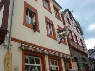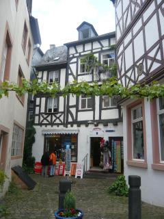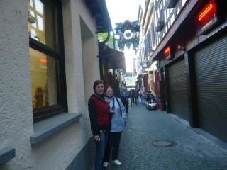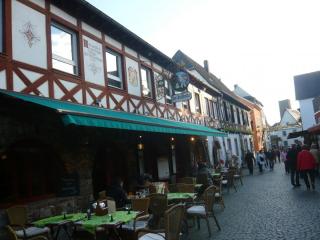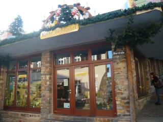 Опубликовано 13 июня, 201411 г. comment_440449 Нам в гору лезть не надо, у реки лежит очаровательный, как игрушечный, городок Бернкастель. Нам выделяется целых 50 минут на его осмотр, с 11.30 до 12.20. Городок оказался заполнен толпами туристов, видимо, в основном, местных немцев, сегодня же праздничная суббота. Мы не можем, как они, сидеть за столиками и беззаботно гулять, но пробежаться по городку успеем. Температура бодрящая, на уличном термометре всего +10, но яркое солнце не дает замерзнуть. Конечно, на главной площади неизменный грузовик загораживает часть вида, да ну его! Снимки без комментариев, к чему они? Просто смотрите и наслаждайтесь! Разноцветные, яркие фахверковые дома создают ощущение театральных декораций к большому праздничному веселому спектаклю, немного сентиментальному, как всё немецкое. Так не хотелось уезжать! Хотя сейчас думаю: а смог бы смотреть на эти пряничные домики долго? Ведь это всё равно, что питаться одними пряниками и шоколадом... Как бы то ни было, есть график тура, и мы направляемся дальше, к могучему Рейну, на высоких берегах которого стоят старинные рыцарские замки. Один из них, а именно Марксбург, мы за 10 евро скоро посетим. 50 минут на это немецкое очарование действительно очень мало. Хотелось просто неспешно погулять, разглядывая каждый дом...Мы же пробежались по центральной улице до ...того места , что позволило время. Разговора о том , чтобы чуть-чуть углубиться, даже не могло возникнуть. Потому и фотографии у всех с одной улочки , но с разных ракурсов. Правда, ещё успели посетить нужное заведение рядом с парковкой , где можно было совместить приятное с полезным в лице небольшого сувенирного ларька. В субботнее утро почти все магазины были закрыты и сувенирные в том числе. Потому магниты покупали в туалете, точнее на выходе из него. Несколько лавочек всё-таки оказались открыты, и я купила в одной из них игрушку моего детства для внука. Помните, на круглой полой подставке жираф, который подгибает ноги, машет хвостиком , кивает головой...Вот такого же , но собаку я и купила. Моему восторгу не было предела. Внук тоже заинтересовался, но без восторга. Ведь ему было на тот момент 5 месяцев... Забавное оформление кафе. Привет, Танюша. Магазины с Мозельским вином оказались все закрыты, к сожалению ... Значит, будем пробовать в Рюдесхайме. Жалоба