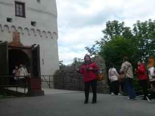 Опубликовано 13 июня, 201411 г. comment_440466 Выехав из Бернкастеля, движемся в направлении города Кобленц, стоящего у места впадения реки Мозеля в могучий Рейн. До замка Марксбург недалеко, вскоре он уже показался на вершине ближней скалы на высоте 150 метров над уровнем реки (снимок нерезкий), и вот автобус поднимается к нему по узенькой дороге DSCN1449.jpg DSCN1452.JPG Автобус останавливается на стоянке, замок-крепость грозно нависает над нами DSCN1513.jpg DSCN1515.jpg Минут через 10 подходит наша очередь, поднимаемся по каменным ступенькам, гид поворачивает огромный ключ в двери, и двери замка открываются, пропуская внутрь DSCN1469.JPG DSCN1472.jpg Прямо на стене замка разбит маленький сад-огород, в котором растет даже артишок, второй раз сегодня его вижу DSCN1486.JPG DSCN1487.jpg DSCN1490.jpg DSCN1491.jpg Несколько минут сувенирного шопинга, посещение туалета - и вниз, к автобусу. Все собираются, едем дальше по долине Рейна. Следующая наша цель - городок Рюдесхайм. Наш гид Владимир. Колоритная внешность, сразу заявивший нам , что наушники и микрофон он не признаёт, предпочитая живой контакт с туристами. Надо сказать , что голос у него действительно позволяет обходиться без микрофона или ещё какого усилителя звука...Вроде рассказывал интересно и всё показал в замке, но лично на меня произвёл среднее впечатление, у меня сложилось впечатление , что все мы ему надоели и экскурсии он проводит без души , повторяя много раз произнесённый ранее материал... Но это моё личное мнение. Возможно, кто-то возразит, что Владимир - гид отличный... Очень уж неудобные дорожки в замке, не для каблуков , явно. Александр Евгеньевич опять попадает в кадр. Садик в замке привлёк всеобщее внимание. Владимир знакомит нас с давними обитателями замка. Людмила, привет!. на входе в замок. Замок с дороги. Жалоба