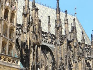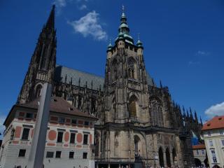 Краткая справка. СОБОР Св.ВИТА-один из крупнейших и значительных чешских храмов,его строительство было начато в 1344г,а окончено лишь в ХХ веке. Экскурсии по собору сейчас,увы, не проводят, заводят только на несколько минут. А чтобы попасть к алтарю,надо отстоять очередь,купив предварительно билет. Это можно сделать только в свободное время.Возникает ИЗУМЛЕНИЕ,когда смотришь на собор снизу вверх на его монументальные башни. Изнутри храм также ошеломляет своими размерами. Обратите особое внимание на главный неф,огромные окна с витражами Альфонса Мухи(стиль модерн),готические гробницы чешских королей(впечатляет гробница Св.Яна Непомуцкого,выполненная из 2-х тонн чистого серебра) и часовню св.Вацлава.