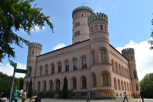 Крутим головами, ан нет... Нет, рядышком Охотничьего замка. Только часть группы, которая не ехала на паровозике, ожидала нас. Они ехали сюда на автобусе. Так что, отказавшись от "Неистового Роланда" (7 евро), до Охотничьего замка вы доедете на автобусе с гидом. Доедете до замка - это громко сказано. Ножками, ножками... И всё вверх. Лес, правда, красивый. Но ножки уже отказывались воспринимать любую красоту)))