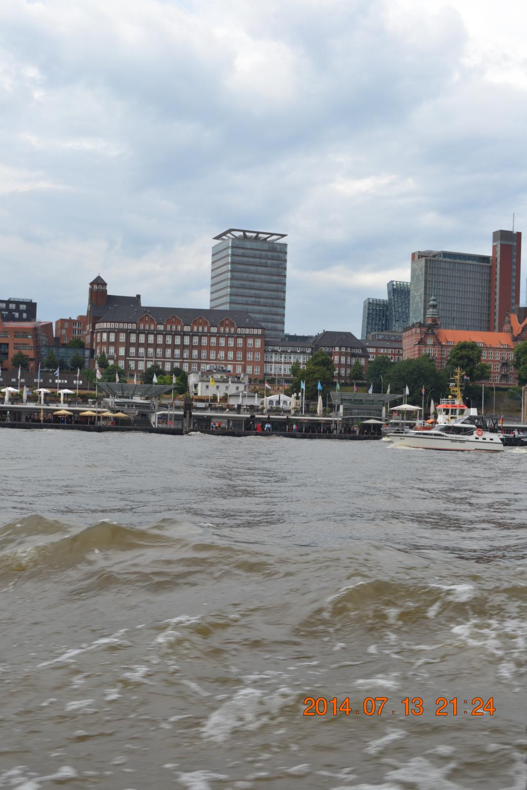 Проходящие в Гамбурге в этот день соревнования по триатлону (4 - ый этап Мировой серии по триатлону - О, как!) Программу по Гамбургу Алёша уточнял с местным гидом до последнего. Многие улицы были перекрыты. Часть соревнований проходила прямо на Ратушной площади. Проехали на автобусе по городу, потом (аааааааааа.... под проливным дождём!!!) шли в порт. Говорят, в Гамбурге погода часто меняется. Вот так встретил нас этот город.