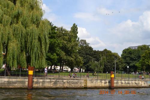 Очень понравилась прогулка по Шпрее. Удобный кораблик, вкусное мороженое и холодная минеральная вода)) Стоимость прогулки в пределах 13 евро. Для пенсионеров - 10.30. евро. Никаких документов не спросили, просто продали билет как пенсионерке. А я и не расстроилась... Знаете, что мне понравилось, как ни странно, в этой прогулке? Город выглядит с воды как огромная мозаика. Практически не одно здание не входит в кадр целиком и только потом, просматривая уже отснятые кадры, складывается пазл города Берлина.