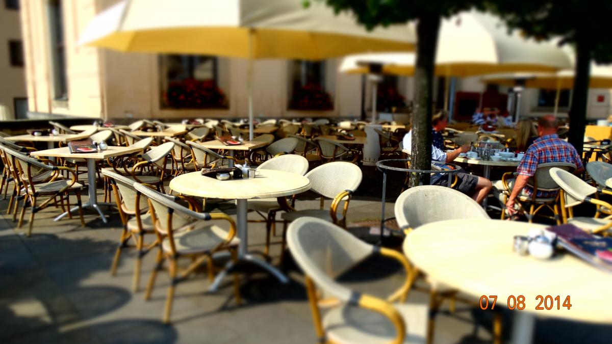 Сначала Эмилия не определенно махнула рукой в неизвестном направлении и сказала, что там есть туалет. Визуально мы не обнаружили нужное направление, но заметив, что большая часть группы уже уверенно идет в том самом направлении, гуськом направились за ними. Было нас человек 15, не меньше. Перешли по пешеходному переходу через дорогу, идем минуту, две, три..крутим головами во все стороны, ну нет тут туалета!!!  Коллективный разум подсказал поинтересоваться у немцев, где найти ближайшее заведение WC. Из местных по пути попался только дяденька-сотрудник кафе. Увидел он внушительную толпу русскоязычных с грустными безнадежными глазами, выслушал наши мольбы, растянулся в улыбке и проводил нас в свое кафе, указав на помещение, где и находится искомый объект. Учитывая количество людей и всего 2 кабинки, можно себе представить, сколько времени занял у нас этот поход.