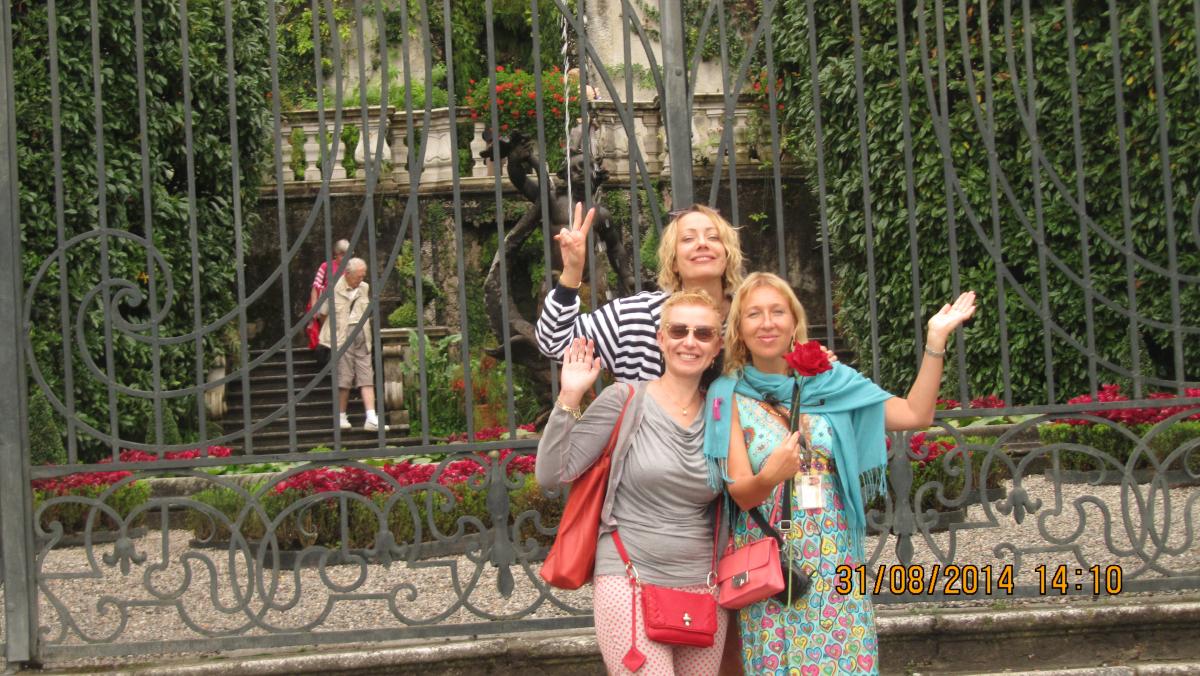 В 7.40 утра после завтрака мы выехали в Комо.  Гидом у нас была Светлана.Недалеко от Комо в  городке Арджинио мы пересаживаемся на катер и едем в г. Тремеццо.  Менаджо  мы осматривали с катера. В Тремеццо мы провели 2 часа, посетили главную достопримечательность города - виллу Карлотта с парком. Кто не ходил на виллу, гуляли по Тремеццо. По возвращении на кораблике в Арджинио мы на автобусе поехали в Комо, пообедали там и осмотрели город. Свободного времени у нас был 1 час и в 17.30 мы выехали в Бельжирате. Вечером собирали вещи, ведь на следующий день мы уже уезжали с Лаго-Маджоре. А теперь смотрите красоту озера Комо.
