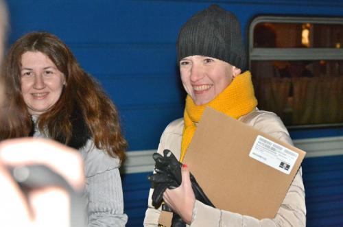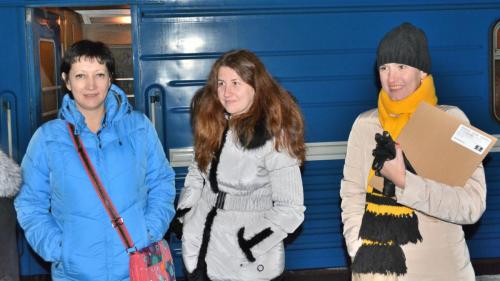 Около вагона встретились с частью группы, прятавшейся от холода в здании вокзала.