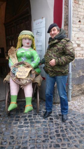 Уже без спешки возвращаемся вниз в центральную часть города к собору, осмотр заканчивается легендами у памятника собаке. Кто-то продолжает самостоятельный осмотр, наша часть идет на обед в старинную пивную. Заворожено осматриваем антураж ресторана со старинными котлами для варки пива, украшенного великолепным рождественским венком. Небольшое ожидание и вот мы уже наслаждаемся прекрасным темным пивом, а чуть позже и замечательным супом – гуляш. Насладившись сытным обедом, продолжаем самостоятельную прогулку, одним из результатом, которого, стала покупка очень милой бабки-ёжки. Не торопясь возвращаемся в автобус, и наш путь  лежит дальше в следующий немецкий городок.