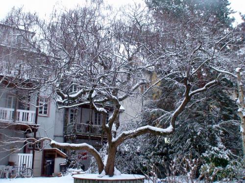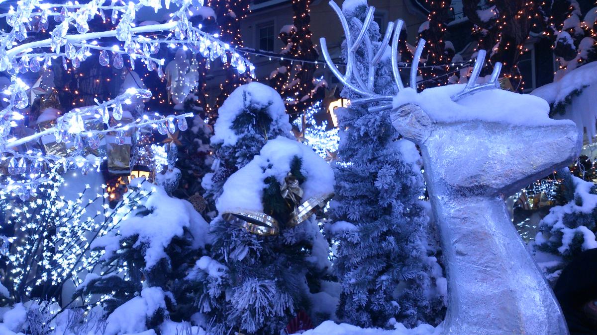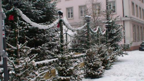 Баден-Баден. Въезжаем в город, и сразу нас встречает легкая, белоснежная и такая родная православная церковь, точнее храм конечно, но домашним уютом от нее веяло даже через окно автобуса. Выходим из автобуса, впереди стрельчатый храм уже совсем другой религии. Еще не вижу нашего гида, в наушниках приятная, очень грамотная речь и сразу проникаюсь к ней теплыми чувствами – не разочаровалась и потом. Курортный город, любимый многими нашими соотечественниками и в рассказе гида о городе конечно много знакомых и любимых имен. Входим в заснеженный сад, под уже ставшими,  привычными слова, что снега не было лет семь, и как мы рады, что вы его нам привезли Фотографирую занесенную снегом аллею, где еще недавно цвели розы и удивляюсь разности ощущения, исходившего от тех фото и увиденного нами сейчас. Идем дальше мимо знаменитого казино и рождественского рынка. Рынок яркий, шумный, бурлящий жизнью, но менее суетный, чем в Берлине. Может мне это кажется, потому что я очень люблю эти маленькие городки, в которых нет столичного лоска, но и столичной суеты то же. В ходим в знаменитый павильон с колоннами питьевой галереи Тринкхалле, но к сожалению водицы испить не удастся – ремонт труб. Но не смотря на это удовольсьвие от прогулке по городу сказочное, дышится очень легко, все дорожки почищены (что нам не встречалась в других немецких городах – это опять к вопросу о мифах), поэтомы в прекрасном расположении духа снова пересекаем речушку по очаровательному ожурному мостику и попадаем в старый город. Легкие сумерки незаметно опускаются на город, огни становятся ярче и отчетливей и вдруг, просто новогодняя сказка заставляет отвлечься от рассказа гиды и только фото, фото и еще раз фото…