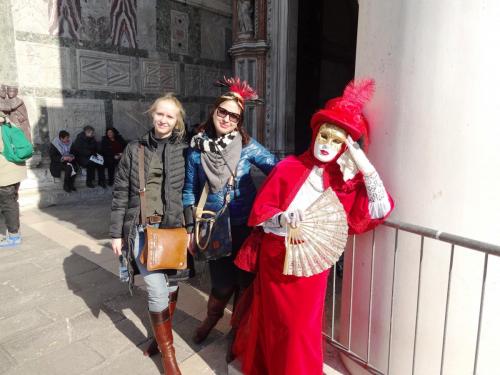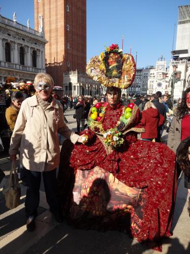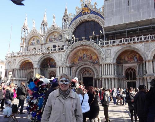 Рано утром мы выехали из Вероны (130 км) в Венецию. Я в Венеции была 2 раза, но мечтала увидеть карнавал, этот костюмированный бал-маскарад. И наконец-то еще одна моя мечта сбылась! По прибытии на катере в Венецию, по пути на площадь Сан-Марко было много палаток с атрибутами карнавала - масками и я купила себе и подруге маску, в которой и ходила по Венеции. Мы были в Венеции в день закрытия карнавала и увидели знаменитый полет льва.
