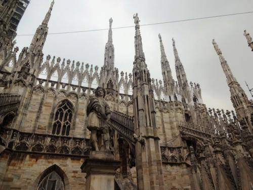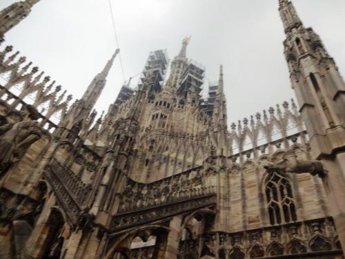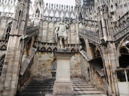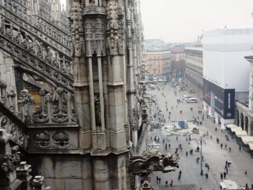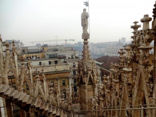 После обзорной экскурсии многие пошли на дополнительную экскурсию в театр Ла Скала, а я решила осуществить свою мечту, побывать на крыше собора Дуомо и увидеть Милан с высоты. Стоимость посещения крыши Дуомо 12Е (на лифте) и 8Е (пешком). В связи с тем, что город готовится к выставке ЭКСПО-2015 много достопримечательностей города на реставрации, в соборе тоже реставрационные работы. Но много экспонатов уже открыто и мы с подругой их увидели. Моя вторая мечта сбылась.