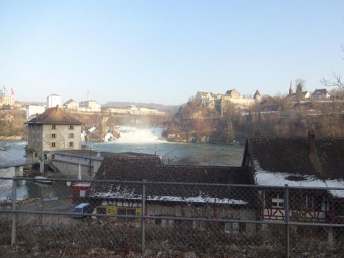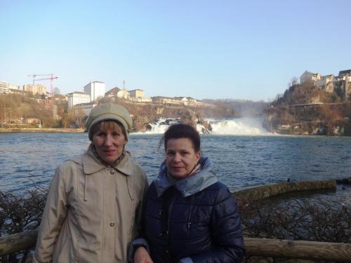Для меня Цюрих был первым городом Швейцарии, в котором я побывала в 2011 году, поэтому уже соскучилась по нему. Да и в купленных тогда швейцарских часах необходимо было заменить батарейку. Я планировала это сделать или в Цюрихе или в Люцерне и обрадовалась, когда Оля сказала всем желающим приобрести швейцарские часы или поменять батарейки, что это мы сделаем в Люцерне. Хоть 12 февраля в Люцерне и был праздничный день и магазины не работали, кроме супермаркетов, Оля договорилась с магазином часов о работе и все желающие побывали там и сделали покупки и поменяли батарейки (20Е) Спасибо Оля!!! Но это было завтра. А сейчас мы осматриваем достопримечательности Цюриха и в 15.00 желающие выехали на осмотр Рейнского водопада. Пусть в феврале он не такой бурный, как летом, но красота его оставила впечатление.  Жаль, что не смогли там купить сувениры, магазины закрылись в 17.00 и к 19.00 мы приехали в первый отель тура "Ибис" в Цюрихе. Оле и водителям предстояла поездка снова в аэропорт за авиатуристами смешанной жд и авиа группы.