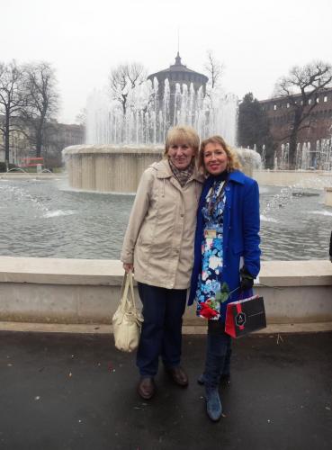 В 10.00 мы въехали в Италию. Так как я полгода назад я была в Милане в свой день рождения, у меня были планы на самостоятельные экскурсии. Сначала хотелось встретиться с гидом по Милану Светой, но Оля сказала что у нас гидом будет Юля. Моей радости не было предела, когда на остановке автобуса у Кастелло Сфорцеско я увидела Свету. Света тоже обрадовалась нашей встрече и мы еще неоднократно виделись в Милане. Туристы нашей группы спросили меня  давно ли моя сестра живет в Милане, на что мы обе удивились. Оказалось, что мы похожи. Вот так у меня в Милане появилась сестра.