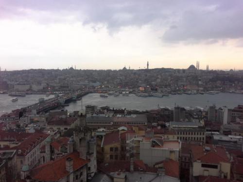 Отстояли очередь и поднялись на Галатскую башню, с которой открываются необыкновенные виды на бухту Золотой Рог, мосты, мечети, дома.