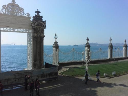 Дворец Долмабахче очаровал и поразил своим великолепием сразу же после прохода безопасности контроля. Территория - прекрасный парк, а слева переливается и искрится в лучах солнца Босфорский залив. Несколько минут ожидания и наша группа заходит в бывшее жилище простых султанов. Съемка внутри запрещена, нельзя прикасаться ни к чему. У нас сплошные охи и ахи. Помещения поражают размерами и роскошью. Люстры переливаются, от них невозможно отвести взгляд.