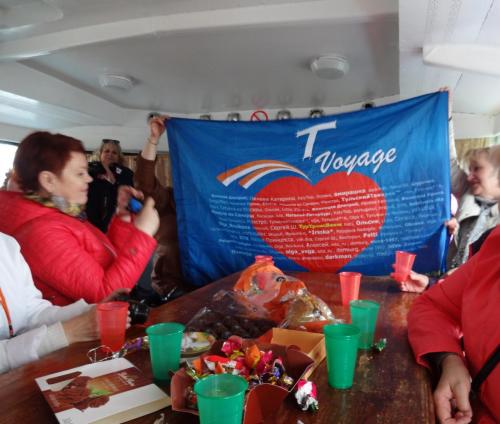 После встречи форумчан у памятника Юрию Деточкину мы поехали на речной вокзал. Там перед прогулкой по Волге состоялось знакомство новичков с символом-талисманом форума - нашим знаменем Туртрансвояжа, побывавшим во многих странах Европы в турах ТТВ. Большое спасибо Танюше из Москвы и Ольге 1а за то, что 9 Мая знамя было в Самаре!!!DSC07521.JPG   DSC07525.JPG DSC07527.JPG