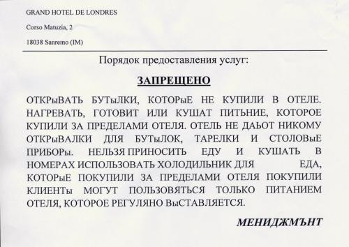 Вот что нашел в одном отзыве о туре с размещением в Grand Hotel de Londres в Сан-Ремо ))))
