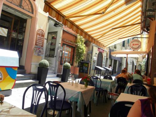 Подальше от набережной, в старом городе - любое, там, где местные. На набережной  и  первой линии в основном, туристы. Какое-то конкретно  не   подскажу, мы  в разные  заходили, больше всего понравилось в старом городе, домашняя кухня, морепродукты на гриле и в кляре, домашнее вино и счёт примерно по 15 евро  на  одного.  Название не  запомнила, попробуйте  определить по фото, если будет желание: