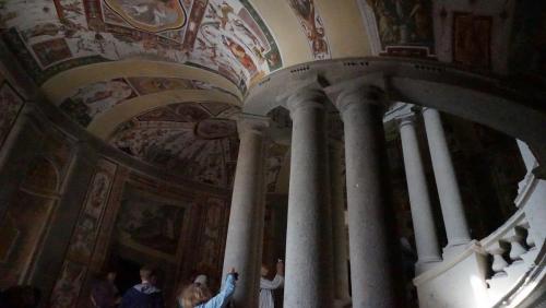 Опубликовано 8 июля, 201510 г. Автор comment_538493 Мы покидаем Рим, и отправляемся на Виллу Фарнезе в городке Капрарола. Первоначально здание было задумано как крепость в форме пятиугольника, но постепенно необходимость в строительстве крепости отпала, и новый владелец, Алессандро Фарнезе, уже по новому представлял себе будущее виллы. Для разработки проекта и строительства был приглашен талантливый архитектор и знаток садово-паркового искусства - Джакомо да Виньола. Стены и потолки комнат Виллы расписаны великолепными фресками с изображением античных героев, Геракла, Александра Великого а также сценами из жизни семьи Фарнезе. Авторами фресок в стиле маньеризма являются братья Таддео и Федерико Цуккарро, винтовые лестницы украшены фресками Антонио Темпеста. К стенам виллы примыкают сады на каждую сторону. Рядом с виллой кардинал Эдуардо Фарнезе возвел одно из самых красивых зданий городка Капрарола - церковь Святой Терезы, среди алтарных картин которой есть работа Гвидо Рени. Жалоба