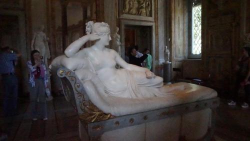 Опубликовано 3 июля, 201510 г. Автор comment_537475 Во второй половине дня у нас было запланировано посещение галереи Боргезе. Это один из самых популярных музеев Рима, мне он тоже очень нравится. Вроде по площади он небольшой , а сколько шедевров там собрано: "Дама с единорогом" и "Снятие с креста" Рафаэля, "Любовь земная и небесная" Тициана, целый зал картин Караваджо, а также картины Рубенса, Веронезе, Корреджо, Пинтуриккьо и др. Здесь представлены скульптуры Бернини "Похищение Прозерпины", "Аполлон и Дафна", "Паолина Боргезе" Антонио Канова. Перед посещением галереи мы должны были осмотреть парк виллы Боргезе. К сожалению, из-за того, что немного задержались в Ватикане, нам не удалось в полной мере посмотреть парк, прошли только к смотровой площадке и немного прошлись по главной аллее, и нужно было спешить ко входу в Галерею. Хотели даже вернуться в парк после экскурсии по галерее, но был запланирован ужин в одном из ресторанов Рима, а рестораторы отказались перенести его на час попозже. В галерее все вещи, в том числе небольшие дамские сумочки, нужно сдавать в гардероб. Мне не везет : в первое мое посещение не разрешали фотографировать, в этот раз фотографировать разрешили и я взяла с собой фотоаппарат, но, видимо, я так славно поработала в садах Ватикана, что через некоторое время у меня села зарядка ( как всегда в самый неподходящий момент). Мне не удалось запечатлеть на память скульптуры Бернини ( они хотя и расположены в первом зале, но когда мы зашли, там было много народу и гид нашей подгруппы сказала, что мы вернемся сюда немного попозже и вернулись, конечно, но мне фотографировать уже было нечем (телефон я сдала в гардероб). Купила в магазине книжку с фотографиями, ну и мои товарищи по путешествию немножко выручили меня - прислали фотографии, которые я просила. Только выйдя из галереи я вдруг поняла, как жутко я хочу есть, ведь в этот день, полный всяческих треволнений, все пришлось делать в темпе, так, что не только поесть, но даже голову повернуть в сторону еды некогда было. Пришлось срочно попросить Елену взять и меня на ужин, т.к. сразу я не записывалась. Ужин прошел в теплой дружеской атмосфере, с музыкой , танцами. Только не спрашивайте меня, что подавали на ужин, в упор не помню. Вообще, из многочисленных обедов и ужинов, а я ходила почти на все, мне запомнился только обед на острове Пескаторе, где подавали наивкуснейшую рыбу (вот она мне запомнилась). Если будете в тех местах - рекомендую отведать рыбки. Жалоба