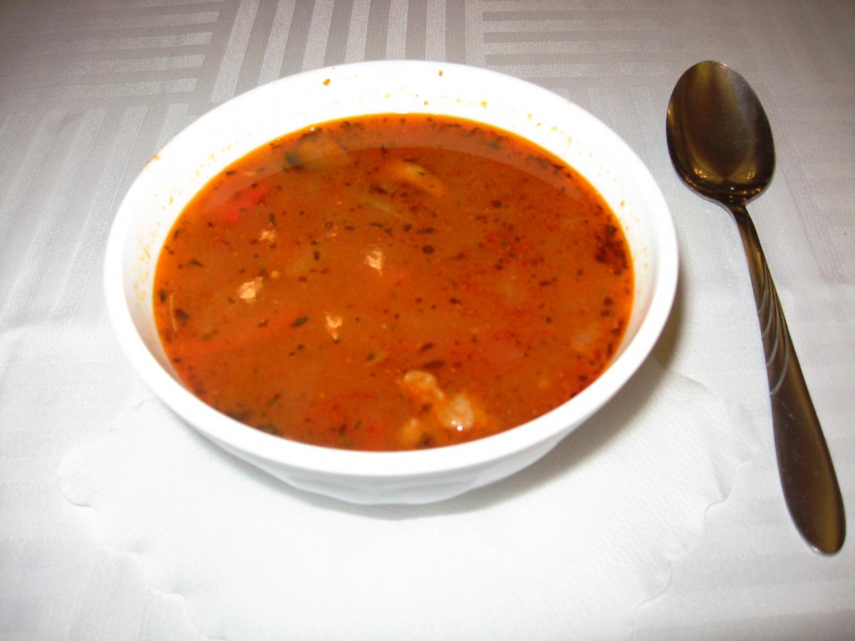 На выбор: первое - журек или фляки или гуляш, второе - курица или мясо или рыба. Брала гуляш, мне понравился, острым не показался. И второе очень вкусное.