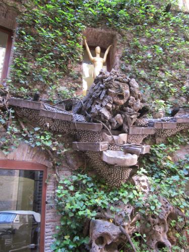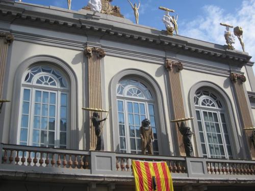 Напишу немного про путешествие в Фигейрос,пусть мои одногруппники дополняют.Эту поездку я ставила под знак вопроса,колебалась долго, скажу честно.Ну НИЧЕГО я не понимаю в творчестве Сальвадора Дали.Признаюсь, поездка тоже никакой ясности в его творчество не принесла,но я о ней не жалею ни минуты.Мы ездили своей группой и было нас довольно много.По дороге гид(кажется, Ирина,поправьте меня,если ошибаюсь) рассказывала о Дали.О его семье, учебе, отношениях его с друзьями и родственниками и ,конечно,с Гала.Ее рассказ мне понравился, занимательн и доступно..Ехали мы в Фигейрос не долго,минут 40-50.В Фигейросе нам предстояло увидеть церковь,где крестили Дали и театр,который существовал при его жизни, но был уничтожен во время гражданской войны в Испании в 1938 году.Дали на обугленных остатках театра создал свой музей и подарил его родному городу. Так появился театр-музей С.Дали.Там же находится и его могила.Кроме театра-музея мы посетили выставку ювелирных изделий,созданных по его эскизам.(5евро).Ирина взяла билеты в кассе и раздала их нам.Экскурсию по музею она не проводила,это делают лишь местные гиды.Однако при входе,там,гда когда-то находилась сцена, гид нас подробно сориентировала где что посмотреть.А дальше я гуляла по залам и чувствовала,что где-то смешно,где-то уродливо,где-то занимательно, а где-то и страшновато. Но равнодушия точно не было.Дальше я размещу несколько фото из музея.без комментариев.