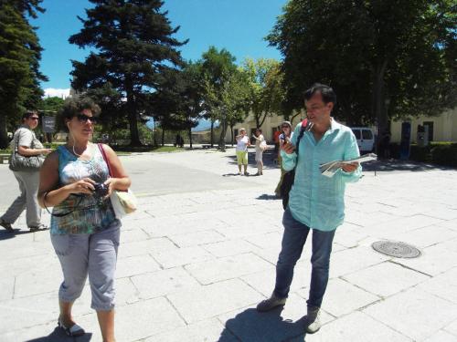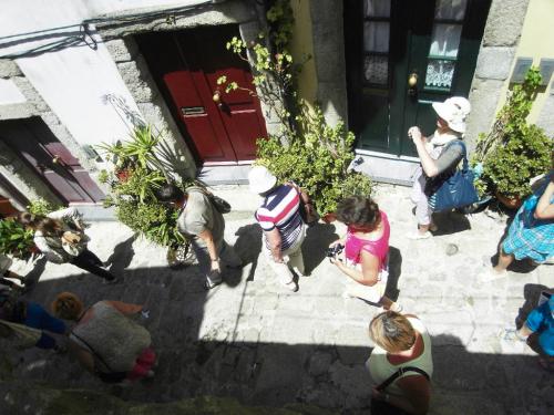 Ну, вот мы и добрались  до смотровой площадки, откуда открывается  замечательный вид на  город. По дороге  заходили во все  знаковые места: книжный магазин, соборы, вокзал со знаменитыми  азулежу.  А теперь нас  ожидает  крутой спуск  к  реке  Дору.