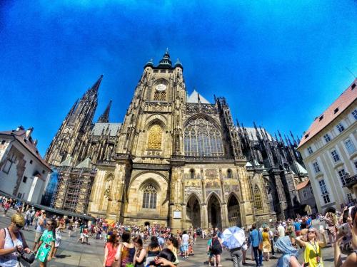 Опубликовано 20 августа, 201510 г. Автор comment_548652 4.08. День 3. "Магическая Чехия. Продолжение"Добрались мы до Праги быстрее, чем ожидалось...но с небольшим опозданием, около 11. Помимо обзорки нам еще дали два часа свободного времени. Дополнительная прогулка на кораблике по Влтаве у нас с треском провалилась, не набрался народ. А я так люблю кораблики...и воду...и прогулки по воде... Одногруппники, ну что же вы так? :cray:Те, кто уже был в Праге, вышли у вокзала, а мы поехали в Пражский Град, по пути забрав нашего местного гида.Здесь-то нам и пригодились наши наушники, которые мы купили заранее. Очень порадовал тот факт, что ТТВ наконец-то приобрел свои устройства для аудиогида, и теперь мы вместо 22 евро заплатили всего 5 за весь маршрут! За такие деньги грех не взять наушник, тем более это так удобно! Группа большая, почти 60 человек, все время бежать за гидом не получится, да и рядом встать тоже... А так хоть и фотографии спокойно сделаешь, и интересные факты послушаешь, и полезную информацию для себя узнаешь. Наушниками, дорогие (даже бывалые) путешественники, пренебрегать ни в коем случае нельзя! :i-m_so_h:Вышли мы из автобуса, а на улице жара! Гид наша обзавелась модным зонтиком от Сваровски, а мы начали принимать первые порции европейского загара. Повели нас гулять по Праге. Пойдемте с нами?Строгие караульные стояли непоколебимо (не то, что польские друзья у президентского дворца, те улыбались во все свои 32) с каменными лицами и выражениями на лице "Да прекратите вы уже с нами фотографироваться!" и "Скорее бы на обед" :biggrin:Вот у них профессия, а! Каким надо быть стойким человеком! По лицу пот течет, а двигаться нельзя... Нескончаемое уважение к таким людям!Подошли к собору Святого Вита и отметили очевидное сходство с Кельнским собором. Ну согласитесь, очень похож?Вошли внутрь, народу - тьма...гид нас как-то вывела в середину и стала рассказывать про историю собора.Рассказала чем отличить обычный собор от кафедрального. Интересно...а этот собор оказался кафедральным...об этом нам рассказывают балкончики наверху, кафедра епископа и место за алтарем.Вышли из собора под впечатлением, огромный и величественный, очень красивый!Попали под смену караула, гид дала нам около минуты, чтобы посмотреть на это и что-нибудь заснять. Народу - тьма. Я со своими 180 см в росте не увидела ничего, кроме оркестра на балкончике. Спасла палка на моей камере, которую я вытянула на всю длину, чтобы снять сие действо свысока на видео. Позже посмотрела смену караула уже в автобусе :biggrin:Потом побежали...куда бежали - непонятно. Жара к полудню набирала обороты, а мы бежим. У нас началась экспресс-экскурсия. Знаете, в Америке есть такие курсы, типа "фотография на бегу", что-то подобное было в фильме "Всегда говори ДА". Вот такое у меня сравнение со следующим часом обзорной экскурсии. Успел сфоткать - молодец. Не успел - приезжай еще :laugh2: :laugh2: :laugh2:Спускались с лестницы Пражского Града тоже с ветерком и по тени, радовало одно - идем вниз. Навстречу забирались люди буквально с языком на плечах по жаре, а путь-то неблизкий, да еще и вверх. Мы сочувствовали им и бежали вниз. Гид периодически делала остановки секунд на 30, чтобы мы отдышались...постоянно переживала не перегрелись ли мы.Мощеная дорожка уже настолько стерта туристами, что превратилась в каток...многие подскальзывались (и не раз). Хорошо, что никто не упал