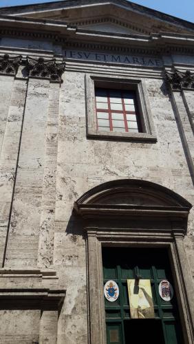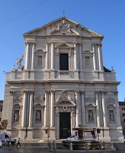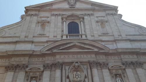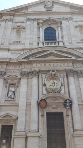 Церковь Пресвятого Имени Иисуса или Иль-Джезу (Chiesa del Sacro Nome di Gesù) занимает особое место в истории римской архитектуры. Её называют «матерью иезуитских церквей», главным храмом Общества Иисуса. Строительство церкви для Ордена в Риме было инициировано Игнатием Лойолой в 1551 году. Храм строили 16 лет – с 1568 по 1584 гг. После освящения он стал титулярной соборной церковью римского Ордена Иезуитов. Над главным входом в церковь расположен картуш с монограммой Иисуса. Над боковыми вратами, в нишах, установлены статуи святых Франциска Ксаверия и Игнатия Лойолы.