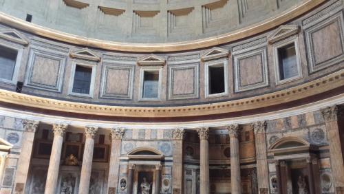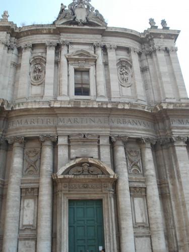 Обойдя Императорские форумы, выходим к церкви Святых Луки и Мартины, которая состоит из двух наложенных одна на другую церквей. Первая церковь была создана еще в VI веке в честь Святой Мартины, она почти полностью «ушла» под землю, поэтому над ней в 17 веке Пьетро да Кортона построил верхнюю церковь с характерными сводами, галереями и куполом.