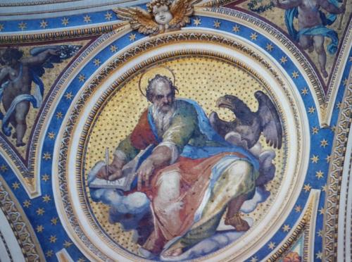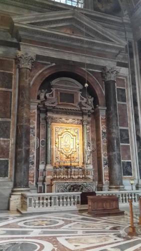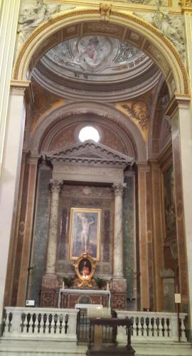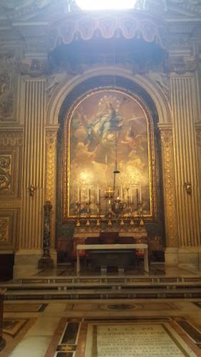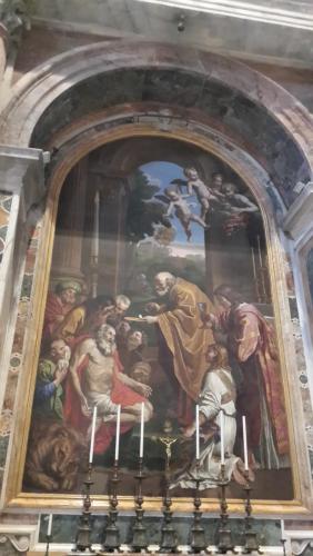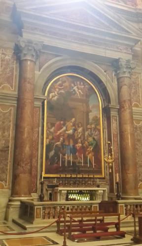 Запрестольный образ «Последнее причащение Св. Иеронима» художника Domenichino, 1614. Переведена в мозаику в 1744 г. Знаменитая картина ныне хранится в Пинакотеке Ватикана. На картине изображен Св. Иероним, принимающий последнее причастие от Св. Ефрема, которому помогает Св. Паула.