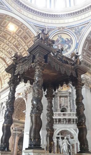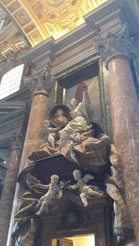 Она включает поддерживаемое четырьмя статуями Отцов Церкви кресло Св. Петра, над которым парит в сиянии символ Святого Духа.