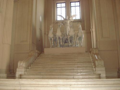 Спустившись до середины лестницы, мы полюбовались статуей Кола Риенца, который стал жертвой народной расправы.