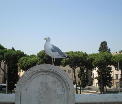 Сверху открывается красивый вид на площадь, вместе с нами Римом любуется чайка….