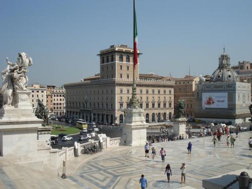 Площадь Венеции формируется монументом «Витториано» - памятником Виктору-Эммануилу II, воздвигнутый (1885 - 1911 гг.)  к годовщине объединения Италии в 1911г. Памятник, шутливо называемый римлянами «пишущей машинкой», представляет собой уступы огромной террасы из известняка. Перед ним - широкая лестница, ведущая к Алтарю отечества, где в 1921 г. устроена могила Неизвестного солдата в память павших в Первой мировой войне; над ней - статуя богини Ромы.