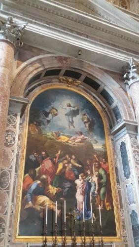 Алтарь в честь Преображения Господня (схема – 59). В картине соединены два сюжета - преображение Христа и эпизод о встрече апостолов с бесноватым мальчиком, который был исцелен Иисусом Христом, сошедшим с горы Фавор. Сама картина сейчас находится в Пинакотеке Ватикана, а в соборе - ее мозаичная копия.
