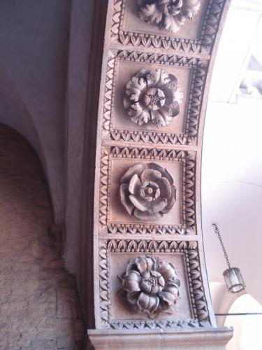 Внешнее украшение – из белого мрамора из Каррары и зеленого мрамора из Прато.