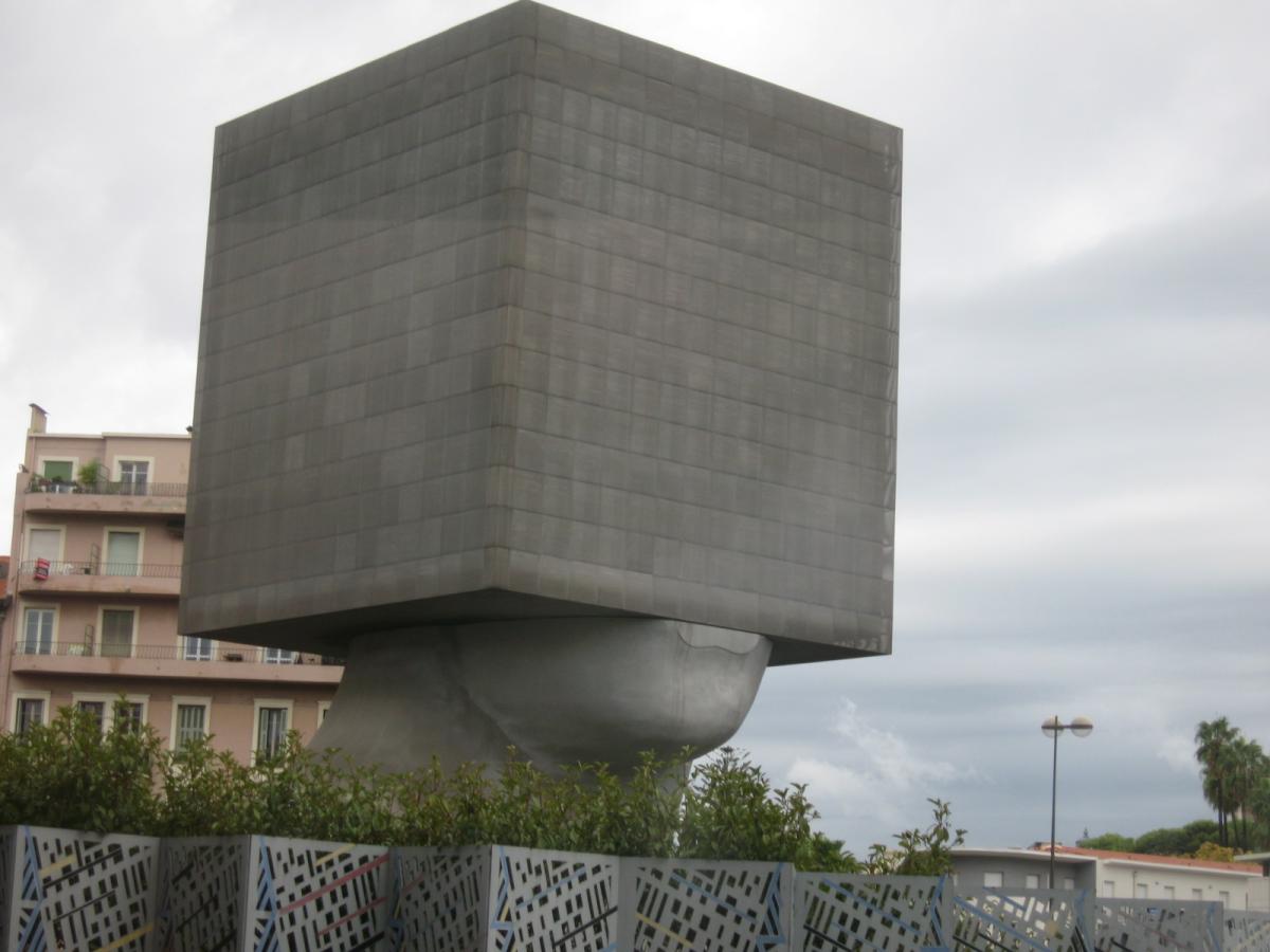 Привет, ГОЛОВА!!! Еще в прошлый визит в Ниццу я почему-то решила, что ТЫ находишься у входа в музей современного искусства. Как же я ошибалась!!!   В этом здании, именуемым " Квадратной Головой" (La Tete Carree) с 2002 года размещается административное здание муниципальной библиотеки им. Луи Нусера, сама ж библиотека - в наземном большом здании.