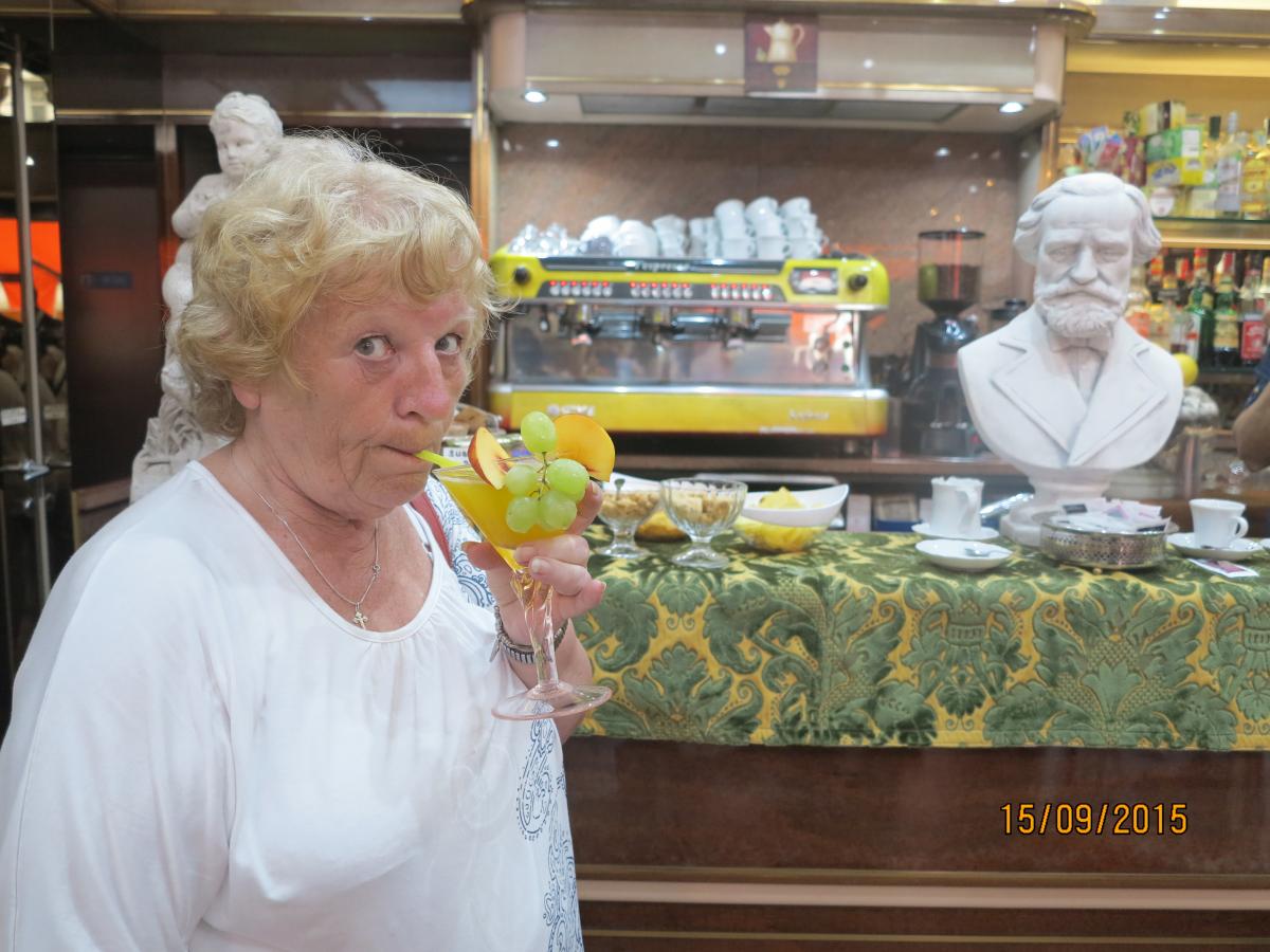 Третья Людмила записалась на коллективный обед в ресторане самообслуживания, при этом у нас всех в планах был подъём на крышу, пошли в разведку, нашли кассы , где впоследствии купили билеты, и быстро пробежали через галерею к площади перед Театром ла Скала, где была назначена встреча для жаждущих отобедать.