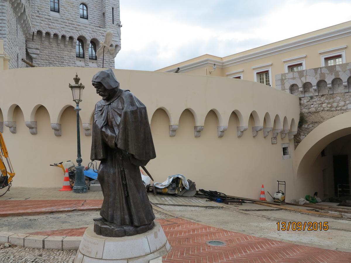 В 1297 году Франсуа Гримальди по прозвищу " Хитрый" под рясой монаха укрылся в укрепленном монастыре. Впоследствии он выгнал монахов, захватил власть, назвав себя правителем области... Статую Франсуа Хитрого в облачении монаха установили в память о 700-летии правления династии Гримальди...