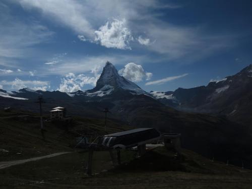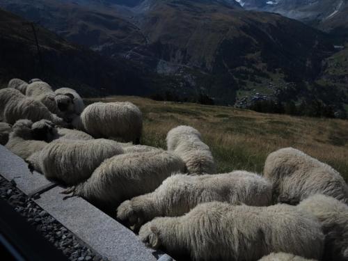 Картинка постоянно меняется, облачка, как приклеенные, кружатся вокруг вершины Маттерхорна, прикрывая его то с одной стороны, то с другой. На пути внезапно появляются пасущиеся барашки, еле успеваю среагировать: