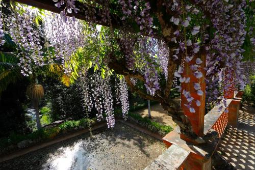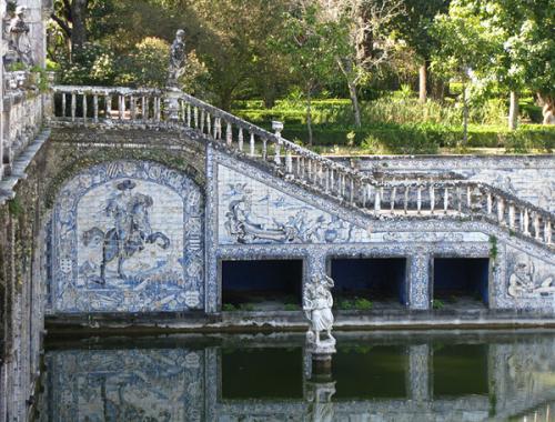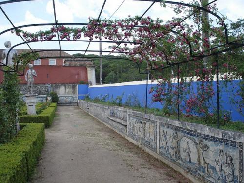 Территория вокрух дворца украшена великолепным садом, который открыт для посещения. Небольшой по площади он настолько насыщен различными элементами, и настолько содержателен, что похож на ларец с драгоценностями, который завораживает с первого взгляда, хочется рассмотреть каждую деталь, заглянуть в каждый уголок. Здесь можно увидеть яркий пример парадного регулярного садика с фонтанами и скульптурой, созданного под влиянием Итальянского Возрождения, и отдохнуть в тени "Сада Венеры", подняться на "галерею Королей", где в бюстах представлена династия Браганса - королевского дома Португалии, полюбоваться сверху прекрасными видами и прудом с лебедями, и, что очень интересно и важно, познакомиться с удивительным искусством, так характерным для Португалии - искусством Азулежу. Азулежу - это расписные, керамические панно, изразцы, которые покрывают практически все вертикальные поверхности сада, а также цокольную часть дворца. Затейливый самшитовый орнамент, балюстрада, украшенная вазонами с цветами, скульптура на высоких пьедесталах, гладь воды в бассейне, отражающая живописную бело-голубую плитку глухих ниш, и Королевская галерея, также декорированная плиткой, - все это создает очарование, которое в этом сочетании является уникальным в европейском садовом дизайне.