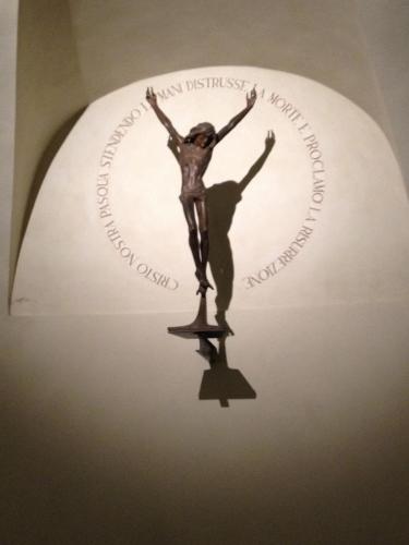 На распятии написано "Христос воскрес из мертвых, смертью смерть поправ"