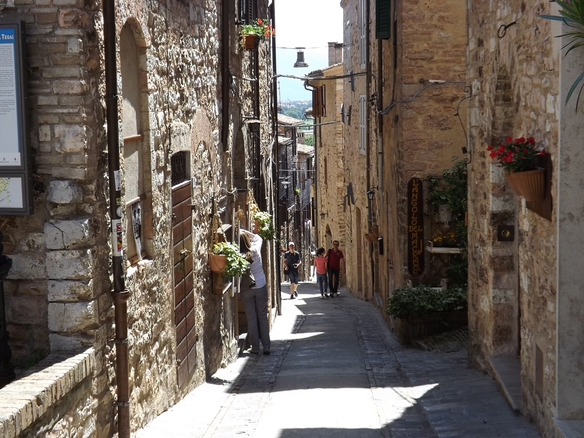 Опубликовано 19 февраля, 20169 г. Автор comment_582949 По программе после Сполето: Переезд (50 км) в Ассизи. По дороге остановка в Спелло – еще одно воплощение Умбрии с улицами, которые называют самыми цветущими в Италии. Посещение Собора Санта Мария Маджоре, известного фресками Пинтуриккио. Маршрут и очень подробная прогулка по Спелло от nat-ka http://nat-ka.livejournal.com/231157.html#cutid1 Спелло знаменит своею страстью к цветам. В переулках можно всегда наблюдать одну и ту же картину: цветущие сады в горшках и горшочках, в кадках и вазонах, на деревянных тележках и в старых шинах. В Спелло раз в год также проводится знаменитая Lа Infioratа di Spello, или фестиваль цветочных ковров, знаменитый на всю Италию.Подготовка к фестивалю ведется очень серьезная. Порядка 2 тысяч мастеров несколько месяцев трудятся над будущими шедеврами, придумывая сюжеты, разрабатывая эскизы, собирая необходимый материал (злаки, ягоды, лепестки цветов и листья), который должен быть только свежесобранный и только в натуральном цвете (использовать красители строго запрещено).Фестиваль проходит каждый год в разное время, так как фестиваль посвящен христианскому празднику, которые празднуют католики - Тело Христово (Corpus Domini), то соответственно необходимо следить по церковному календарю. Празднуют его после Дня Святой Троицы (11 день после Пятидесятницы). Вход свободный - все действие происходит на улицах города Спелло. Всю ночь перед днем фестиваля весь город начинает создавать двухкилометровый длинный цветочный ковер. В 8:00 утра вся работа должна быть окончена (без опозданий). Чтобы полюбоваться этой красотой у зрителей будет всего-навсего 3 часа (с 8 до 11), так как в 11:00 из церкви во главе с епископом выходит шествие и движется по этим коврам. Кроме фестиваля достопримечательностей тут много: это и арка времен императора Августа, и римские башни, и средневековые палаццо и церкви, и высокая древняя башня, на вершине которой (как в Лукке) растет дерево. Крепостная стена, до сих пор окружающая Спелло, является одним из лучших образцов римских крепостных стен в центральной Италии. Без впечатлений Спелло никого не оставляет, поэтому сюда можно приезжать в любое время года. Первое поселение на горе образовали умбры. Около I в. до н.э. сюда набежали римляне и, отбив господствующую высоту, основали здесь колонию. Отцом-основателем считается император Август, который заложил здесь крепость, назвав ее Colonia Julia Hispellum, и подарил ее особо заслуженным легионерам. Спелло упоминается в трудах Страбона, Птолемея и Плиния. Свое второе имя, Flavia Constans, Спелло получает при императоре Константине, и античная табличка с надписью о том, что император дал свое имя городу, хранится по сей день в местном Палаццо Коммунале. Римлянам город обязан рядом сооружений: театром, крепостной стеной и шестью воротами, термами… Крепостная стена, до сих пор окружающая Спелло, является одним из лучших образцов римских крепостных стен в центральной Италии. Ворота Porta Consolare, украшены тремя античными статуями (правда, статуи были найдены не у ворот, а в амфитеатре, расположенном неподалеку от Спелло). Дерево на вершине башни, в отличие от города Лукки, не дубовое, а оливковое, и ежегодно с него собирают урожай. Сохранились и пять других ворот стены, к примеру, Porta di Venere, датированные I в.до н.э., которые имеют две двенадцатиугольные башни. Ворота стали объ